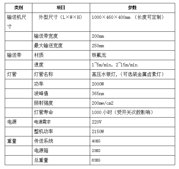 小型UV固化機參數(shù):